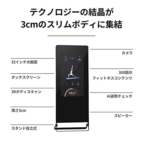 ミラーにフィットネスプログラムが写り、トレーニング画像と自分画像が映ってトレーニングができるシステムのようです。