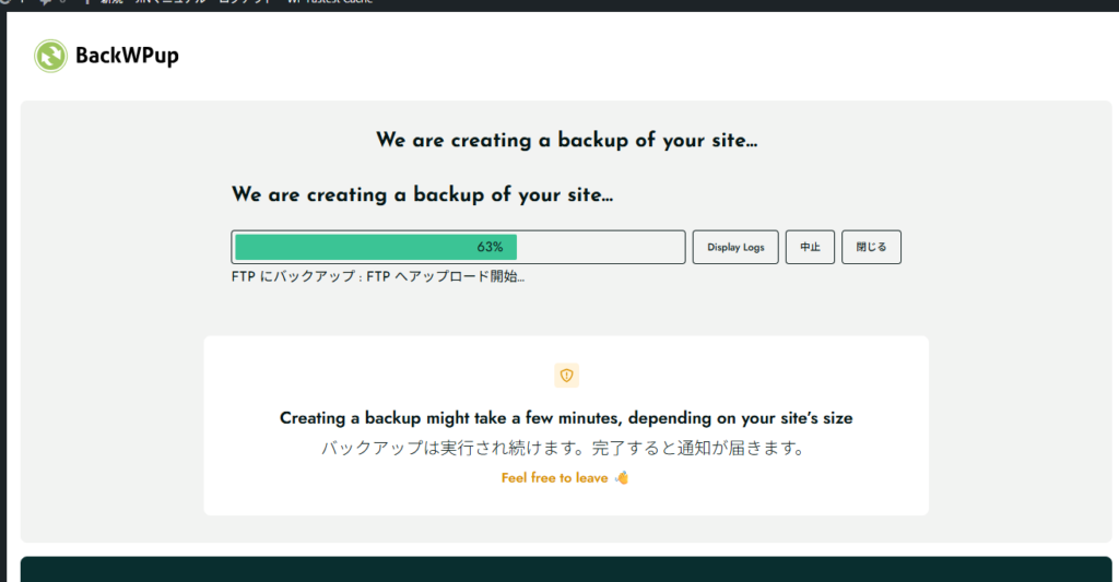 こちらは、私のWordPressの画面です。BackWPupを使用してバックアップしています。ConoHaWing以外の別のサーバーにftp転送をしています。設定は簡単です。